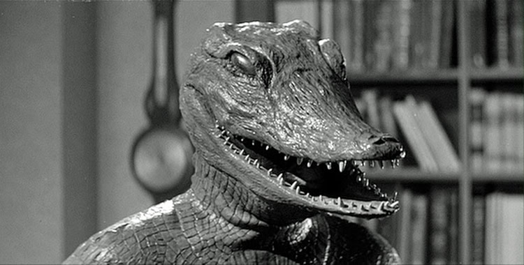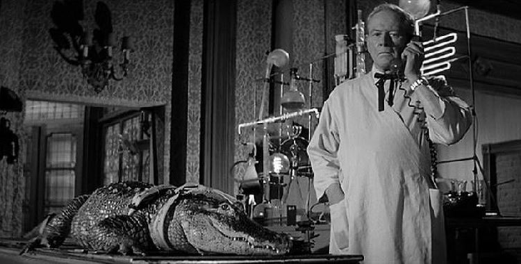 Der SF-Grusler THE FLY war 1958 ein großer Hit für 20th Century Fox, für das im Jahr darauf anstehende Sequel „Die Rückkehr der Fliege“ benötigte das Studio einen zweiten Film um das übliche Double-Feature-Format zu erfüllen und gab bei Produzent Jack Leewood „The Alligator People“ in Auftrag. Regisseur Roy Del Ruth, dessen letzter Film dies bleiben sollte, war in den Jahren zuvor bei Warner Bros. für eine ganze Reihe bedeutender Filme verantwortlich gewesen, Oscar-Preisträger Karl Struss an der Kamera bürgte für atmosphärische CinemaScope-Fotografie. Während hinter der Kamera also A-Movie-Personal wirkte, standen davor handelsübliche B-Movie-Darsteller: Hauptdarstellerin Beverly Garland kennt man aus diversen Monster-Filmen von THE NEANDERTHAL MAN (1953) bis hin zu Roger Cormans IT CONQUERED THE WORLD (1956). In frühen Corman-Werken war Garland besonders oft zu sehen, führte einige Zeit sogar eine Beziehung mit dem Regisseur, bevor sie sich später auf eine TV-Karriere verlegte. Das bei Genre-Fans wesentlich bekanntere Gesicht ist hier allerdings Lon Chaney Jr., Universals ursprünglicher Wolfsmensch, dessen Physis zum Zeitpunkt dieses Filmes allerdings durch seine Alkoholabhängigkeit bereits sichtlich angeschlagen war und dessen große Zeit und Hauptrollen-Status hinter ihm lag.