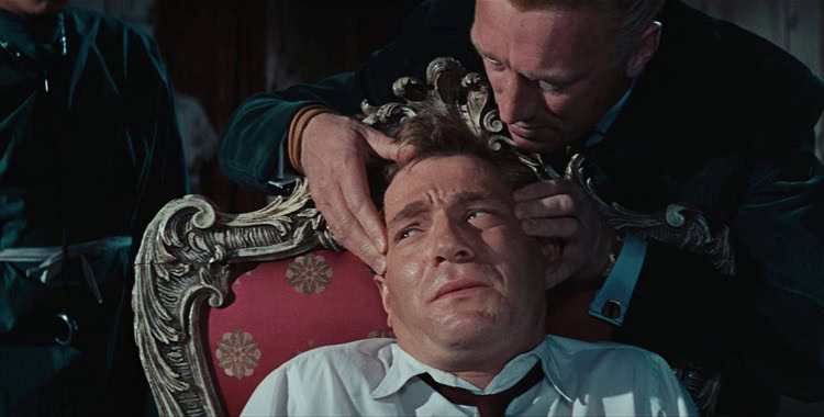 Dass selbst eine Schule zu einem geheimnisvollen Ort der Agentenwelt wird, ist Pinters Ambition geschuldet, die Gefahr der Indoktrination von Kindern und Jugendlichen für faschistisches Gedankengut anklingen zu lassen. Als Quiller Inge verlässt, wird er im Auto verfolgt. Obwohl er die Beschatter abhängen kann, stoppt an einer Ampel ein eleganter Mercedes neben ihm. Seine Wahrnehmung verblasst. Unscharfe Kamerabilder, schräge Einstellungen, Quiller schläft ein. Jemand schiebt ihn vom Fahrersitz weg mit den Worten „Ich werde jetzt fahren“. Quiller bekommt die Fahrt halbwegs in verschwommenen Eindrücken mit und landet direkt in einem alten Gemäuer, das sich als Hauptquartier von „Phoenix“ herausstellt. Als er von dem Anführer der Nazi-Bande, Oktober (Max Von Sydow), verhört wird, bleibt er auch standhaft, nachdem ihm eine Wahrheitsdroge injiziert wurde. Statt vernünftiger Lügen über den angeblichen Beruf in einem New Yorker Verlag gibt er nun geradewegs obszöne Antworten über die Attraktivität von Inge, ihre langen Beine – so sehr, dass man darin eine Freudsche Verschiebung erkennen mag: QUILLER MEMORANDUM legt hier explizit die tiefere Ebene des Agentenfilms offen. Der unterschwellige Wunsch nach Sex-Appeal-Lifestyle (wie in Bond-Filmen) und dem Verschwinden der Restriktionen einer biederen Nachkriegswelt.